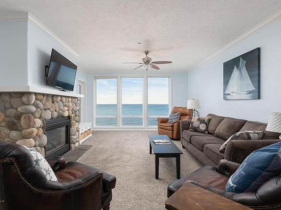Welcome to ''Whale Crossing'', a successful vacation rental in the highly sought after condominium complex of The Village at North Pointe! Take in these expansive ocean views from this second floor condo, located right next to the elevator & stairwell for convenient access! This Impeccably maintained 2 Bedroom/2 Bathroom unit features high-end finishes throughout including quartz kitchen & bathroom countertops with tile backsplash, custom cabinets, roll-in tiled shower & tiled bathtub surround, hardwood floors, gas fireplace, detached garage, additional storage closet & much more! Being sold fully furnished/turn-key, ready for you to start enjoying the Summer or making money during peak season! The Village at North Pointe amenities include a 2-level clubhouse with indoor pool, hot tub, pool table, movie theatre, kitchen and exercise room. Zoning allows for outright vacation rentals, Buyer to confirm with the city for all planned uses. Schedule your showing TODAY!!!