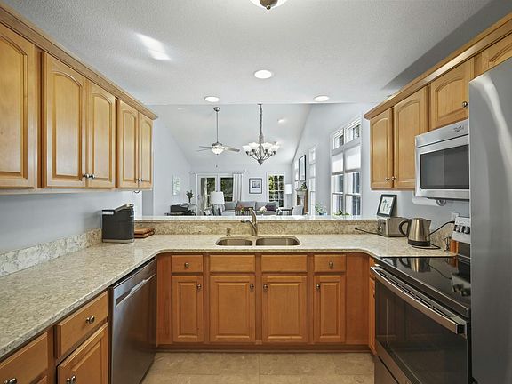 Beautiful end unit ranch condo in the city of Manchester, with great views of Nature throughout. Open concept kitchen, recently updated, with new counter tops and with new stainless steel appliances (2023) included. Spacious living room with vaulted ceilings and gas fireplace, overlooking a private covered deck. Finished basement with a second living room, large bedroom and a full bath. Finished walkout basement features plenty of natural light and additional secluded patio space. Main floor laundry room. Back up generator included. Central AC. Attached 2 car garage. Tons of storage space throughout. Within walking distance to downtown Manchester and hiking / biking trails.