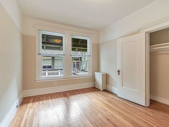 Bright and spacious 1-bedroom apartment in a classic Nob Hill building featuring large windows and hardwood floors throughout. This unit is located on the top floor overlooking Pine Street and the courtyard.