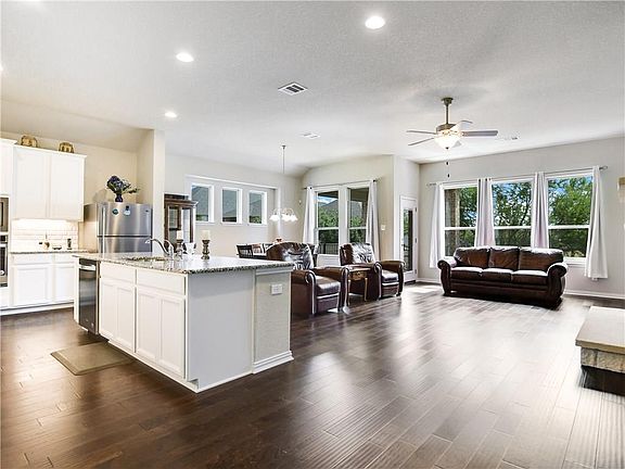 This beautiful 7 month "new" Wilshire home is right next to a Heritage Tree - Park. Move in ready. Light, bright, open & airy this home is located in the coveted section of Wolf Ranch that has the large expensive homes above the San Gabriel river 4 homes away. The DEN is a award winning amenity center (pool) tucked in the Texas Hill Country & above the San Gabriel river and its wonderful. Less than 2 miles to the Famous Georgetown Sq. this location IS the best in Georgetown. Close to shopping, hospitals.FEMA - Unknown Restrictions: Yes Sprinkler Sys:Yes