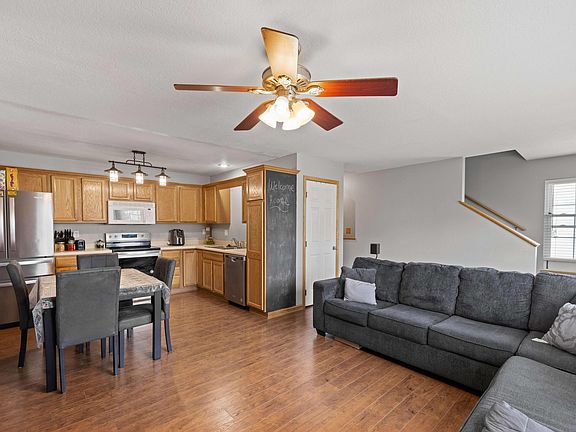 As an end unit, you'll enjoy extra privacy and natural light throughout the home. The main level features a comfortable living space that flows right into the kitchen, where newer stainless steel appliances make cooking and cleanup a breeze. Upstairs, you'll find two nicely sized bedrooms and a full bathroom, giving you the space you need without the upkeep you don't.