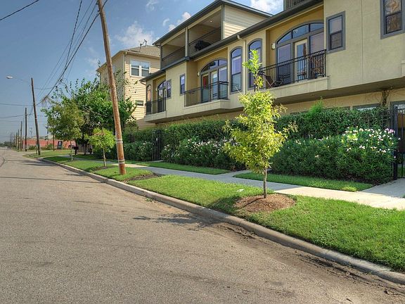 This is the perfect location in the trendy EaDo area! Within walking distance to St. Emanuel Entertainment Corridor, BBVA Stadium & upcoming light rail stop. Immaculate condition with very spacious layout & lots of attention to detail. Hard to find 2 story layout, garage w/5' side storage extension, custom window shades, tons of storage, upgraded crown molding and large bedroom, fenced front yard, gated community and top quality materials! Fully covered roof terrace with amazing skyline views!