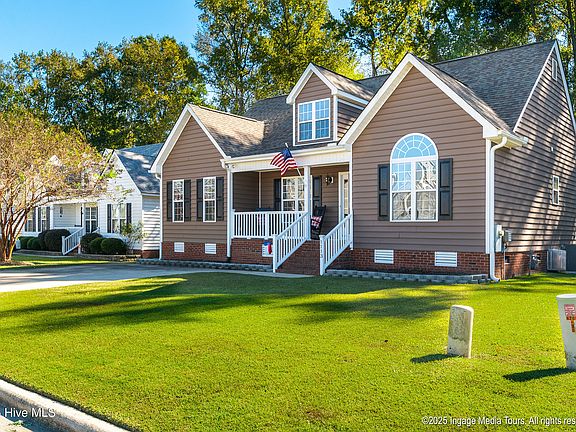 Your new home awaits you in Fieldstream of Winterville! Move-in ready with all of the big-ticket updates already taken care of! Enter the home to a spacious living room with vaulted ceilings, leading to the dining room/kitchen. The split floor plan features primary bedroom suite that's much larger than you would expect, walk-in closet, and an updated, roomy bath. New, gorgeous LVP flooring throughout and new ceramic tile in bathroom was just completed a couple of months ago! The roof was replaced in 2022 and the gas pack HVAC system in 2020! Enjoy a private back yard which backs up to the woods. Entertain and grill out on the brand new wood deck as well! Keep your outdoor items stored in the exterior storage room attached on the rear of the home. Not to mention, the most convenient location to shopping, the Greenville Southwest Bypass, schools, and more!
