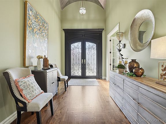 Custom features include; a beautiful, culinary Kitchen with large island, double ovens, 6 burner gas cooktop and full size built-in refrigerator & freezer. Spacious Primary Bedroom Suite with vaulted ceiling and charming wood beams. Primary bath with large walk-in shower, separate soaker tub and double sinks. Oversized custom closet with make-up vanity and mirror. Resort-style outdoor living includes; a heated Salt-Water Pool, Fountain, Spa, Covered Patio, Built-in Grill, and a Putting Green. Downstairs has 2 bedrooms, 2 & 1/2 baths, 2 living rooms plus a dedicated office with beautiful built-ins. 2nd living room perfect for entertaining with wet bar, refrigerator, ice maker and access to the patio. Upstairs has 2 more bedrooms, 2 full baths and a game room area large enough for a pool table. Additional Highlights: -3 car garage. -Large mudroom with built-ins for storage. -Extra large laundry room has cabinetry and closet.