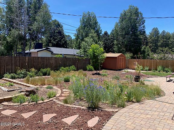 This is your chance to own a home in Coconino Estates, one of the most desirable neighborhoods in Flagstaff. Located on a quiet cul-de-sac immediately west of the Rio de Flag and Urban Trail, it offers easy access to all of the things that make Flagstaff Flagstaff - trails, downtown, campus and hospital. This 3-bedroom, 2-bath, 1392 sq ft house has been remodeled to a more open floor plan with a wood stove, quartz kitchen countertops, hickory kitchen cabinet doors, laminate floors, and tile floors in bathrooms, kitchen and laundry. Sliding glass doors in both the master bedroom and dining room open to the back patio. The large, fenced back yard is a gardener's dream with mature raspberries, a large shed for all your tools and toys, and plenty of room to BBQ and entertain. Both back and front yards are primarily xeriscaped with abundant wildflowers. The main 2-car driveway, front porch and back patios are paver bricks. The one-car attached garage has additional area for storage and attic space above. A second side driveway accesses the back yard - a great place to park a small RV, boat, or additional vehicles off street. You'll appreciate the new roof and dishwasher (2 yrs), and new gas furnace (<1 yr), plus no HOA fees, access to the neighborhood pool with paid membership. The house is oriented to get plenty of winter sun in the kitchen, dining and master bedroom, and double-paned windows and honeycomb blinds throughout keep the utility bills down.
