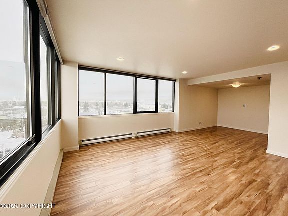 Move in Ready property on the 5th floor of the Woronzof Tower in a fantastic Spenard location . Unobstructed views of the Chugach Mountains and the Inlet! Very convenient area, this property features a secured building with cover parking. Only pay Electric!
