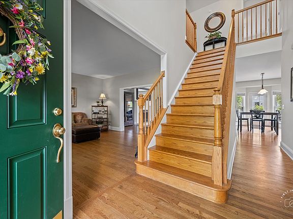 Wait until you step inside this gorgeous 5 bedroom home in Stonefield subdivision of Batavia. Beautiful hardwood floors, which run throughout the entire home, greet you as you entire the large 2-story front foyer. Cozy living room offers access to the open family room with fireplace and living space for reading, desk area and television viewing. Kitchen and family room flow together to allow ample space for entertaining. Generous sized kitchen, with new quartz countertops, provides numerous work areas for all the cooks in the family! Tons of cabinet space & a closet pantry. Views of the gorgeous backyard across the entire back of the house. Access to the huge deck with Edison lights for ambience and evening relaxation. Mudroom with laundry tub and an access door to the backyard provides ample storage space for shoes, boots & coats. Main floor bedroom with large walk-in closet can also be used as an office or den, and sits directly next to the powder room. You'll enjoy the extra-large primary bedroom on the second floor which includes a full ensuite bathroom, laundry room, and dressing room. Bedrooms 2, 3 and 4 all offer ample closet space, and are generously sized. The full finished basement delivers with a sitting area that boasts custom built-in cabinetry and a fireplace. Separate space allows for a game or work-out area. The bar area presents with a full kitchen complete with dishwasher, refrigerator, and sink. There is a rough-out for oven and microwave to be installed. But wait, there's more! The basement also provides a full bath, and a completely separate craft/sewing room. Workbench and shelving in the storage area convey with the home. The entire home has been freshly painted throughout in the past few months. You'll enjoy the large fenced-in yard with mature landscaping to provide privacy and protection. Tree house was built by hand by the homeowners and conveys "as is" with the house. Deep front porch was built custom to be larger than others in the neighborhood to provide ample space for a front porch swing. Side load garage makes parking easy and does not deter from the gorgeous panoramic view of the front of the house. Roof 2014, Furnace 2016, Hot Water Heater 2019, Water Softener 2023 and back-up generator. Walking distance to H.C. Storm elementary school (directly across your own backyard!), Batavia High School, and close to downtown Batavia, the Fox River, and Randall Road shopping. This one has it all!