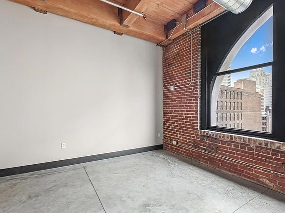 You'll love the soaring 12-foot beamed ceilings, exposed brick, high-end finishes, and the show-stopper--the HUGE arched windows with a partial downtown skyline view. This building used to be a hat factory, and its character is everywhere!