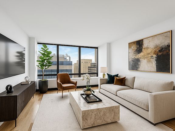 Designed by David Brody, the building has a clean aesthetic and offers one of the most prestigious luxury amenity packages in all of Manhattan. The building has a private residents driveway and is surrounded by a 23,000 SF landscaped courtyard tastefully designed by Zion Breen with stone sculptures and impressive water fountains. The building features top rated full-service amenities including a 24 hour concierge, a large and serene indoor-pool, a state-of-the-art multi-room fitness center, a billiards hall, a child's playroom, an industrial-grade laundry facility, and a 24-hour residential parking garage.