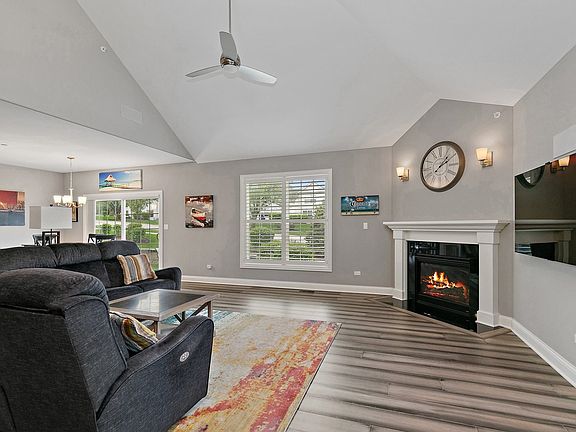 This rare end-unit townhome, located in the sought-after Alpine Heights subdivision, boasts custom upgrades and premium features throughout. Meticulously maintained, this 2-bedroom, 2.5-bath home was built in 2016 and customized in collaboration with the builder to include high-end finishes that truly set it apart. As you enter, you're greeted by vaulted ceilings in the living room, creating an open and airy feel. The open-concept main level offers durable hardwood floors, a spacious living room with a cozy gas fireplace, and a seamless flow into the dining area and modern kitchen-ideal for both everyday living and entertaining. The kitchen features granite countertops, a combination of charcoal and white shaker cabinets, stainless steel appliances, and a large island with ample seating. Just off the dining room, a sliding glass door opens to a private patio, perfect for enjoying morning coffee or unwinding in the evening. The main-floor primary suite serves as a peaceful retreat, complete with an oversized bedroom featuring tray ceilings, an expansive walk-in closet, and a luxurious en-suite bath with vaulted ceilings, double vanities, and a walk-in shower. The main floor also conveniently includes a half bath, a laundry/mudroom with additional storage, and a finished 2-car garage with brand-new epoxy flooring. Upstairs you'll find a generous second bedroom with its own walk-in closet, a full bathroom with a tub, and an oversized loft that overlooks the living area-ideal for a home office, playroom, additional living space, or you can easily convert it to a third bedroom. Additional highlights include plantation shutters on all main-floor windows, custom blinds on all upstairs windows, an indoor sprinkler system for added safety, and an expansive basement with 8-foot ceilings, offering abundant storage or great potential for finishing. The owner also owns all of the land associated with the property, including the backyard, driveway, and side yard. HOA dues are fully paid through the end of the year, and the home's convenient location is close to the commuter train, amenities, dining, parks, and shopping.