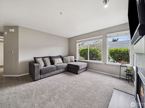 Fully updated, bright yet cozy ground level corner unit. NO STAIRS!! Located in gated Windsong Arbor community. Equipped w/ athletic court, dog run and spacious cabana with kitchenette, ideal for hosting events. HOA covers water, sewer, garbage and gas. Meticulously kept with covered CARPORT & private GARAGE! Plenty of storage space. Close to shopping and easy freeway access. Savor the day from your serene patio or nestle up on the couch in front of your fireplace. Spacious open kitchen with eat-in bar, oversized cabinets, SS appliances and quartz counters. XL bedroom with double closets. Modernized full bathroom with shaker cabinets, quartz counters & smart bluetooth speaker ceiling light. This condo is dialed in and ready for you!