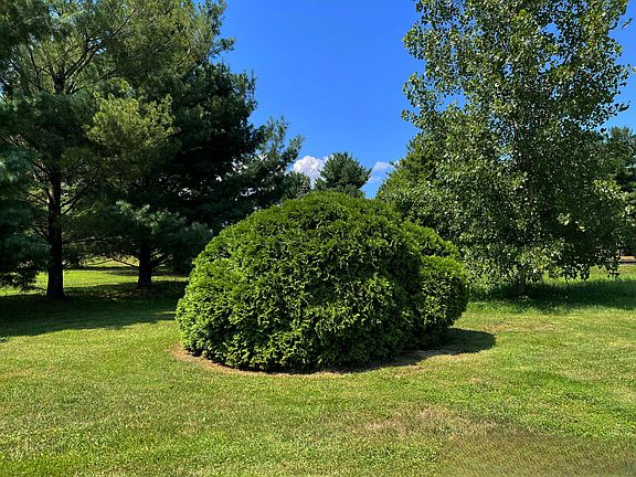 Open and airy 3 bedroom 2 bath home nicely situated on a 1.34 acre lot. Walk in to a bright fully applianced kitchen with an adjoining living room that boasts vaulted ceilings of rich dark wood beams and corner shelving. This is a pleasing contrast to the light walls and carpet. Upstairs find 3 well appropriated bedrooms and a full bath. An unfinished basement could be completed to create additional living space. The rear of the home has mature landscaping and a large concrete patio. Completing this property, there is a large detached 2 car garage that will hold 4 cars or create an amazing workshop.