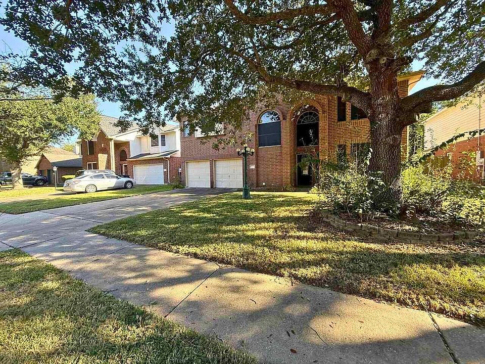 This two-story home offers generous interior space and a functional layout. The entryway features mixed wood and tile flooring along with a prominent staircase. The kitchen provides ample cabinet storage and counter workspace. All four bedrooms are located upstairs, including a spacious primary suite with an oversized walk-in closet. The home also includes a large covered back porch that offers shaded outdoor space for everyday use.