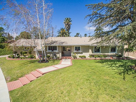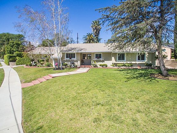Tremendous curb appeal sets this extremely attractive & lovely 3 bedroom home on an over 11,000 sq ft corner lot apart from the rest. Inside, pride of ownership is evident with this warm and inviting open floor plan* The oversized bright family room features travertine flooring, wet bar, & beautiful wood beamed ceilings* Stone fireplace in the living room* The kitchen has a stainless steel dishwasher, oven, 5 burner gas cooktop, tiled counters, recessed lighting, & eat-in area* Master suite with remodeled private bath* Gleaming wood floors & new carpet* Dual pane windows* Copper plumbing* Custom interior doors* Extra large laundry room and breezeway with tons of storage space* Whole house attic fan* Step outside to a serene park-like backyard that features a grassy area, patio, string lighting, garden, & a detached home office/studio* RV Access with full hookups* Close to shopping, restaurants, and fwys* Award winning schools including Darby Elementary & Granada Hills Charter HS!!