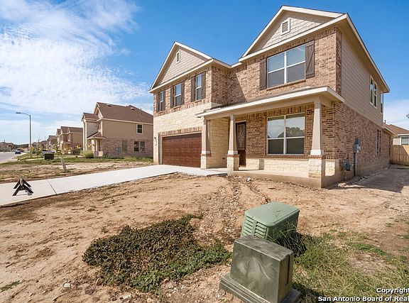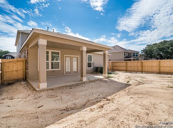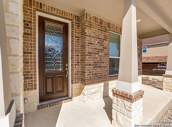 Home features stained 8-ft. entry door, wrought iron downstairs rail system, 2-in. faux wood blinds, kitchen cabinet crown moulding, Silestone kitchen countertop with backsplash, Whirlpool glass top range and microwave/hood combination, full shower with tile surround, extended cabinet with knee space and raised vanity at master bath, soft water system, upgraded Sherwin Williams interior paint, rear atrium door with blind insert, extended covered patio, and Clopay garage door w/ opener and 2 transmitters