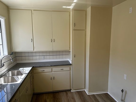 New carpetsRear kitchen door entryKitchen counterFront yard