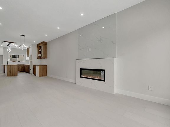Open conceptBeautiful finishesQuartz countertopsQuartz backsplashElectric fireplaceMaple glass railingHardwood flooring