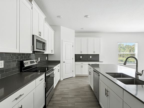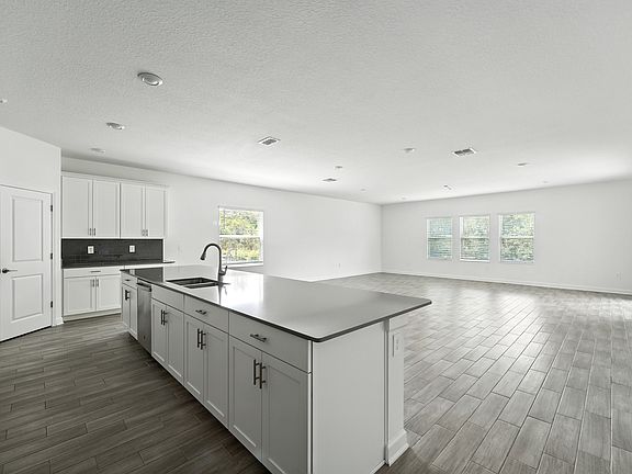 Step inside to an open-concept layout filled with natural light. The gourmet kitchen features quartz countertops, 42" cabinetry, stainless steel appliances, a large center island, and a walk-in pantry, seamlessly flowing into the expansive family room and dining area perfect for entertaining. Sliding glass doors open to the outdoor living space for easy indoor-outdoor living.