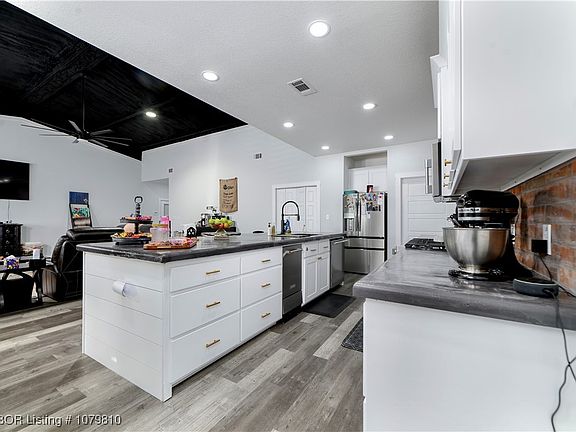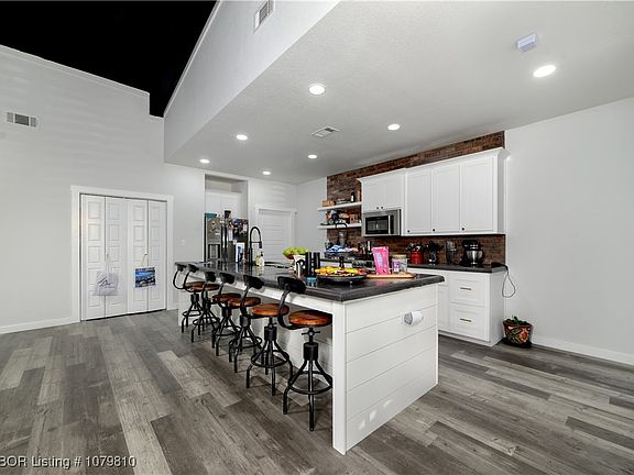 Endless opportunities with this unique barndominium! Walk into a breathtaking, open-floor plan featuring a vaulted ceiling with beautiful fans. The kitchen area has a lovely concrete countertop, a large walk-in pantry, and enough seating for entertaining large crowds. In the huge master bedroom, you'll love the gigantic closet that houses the washer & dryer, and the master bath has a large walk-in double shower. The back patio is perfect for entertaining family or business clients. The attached approximately 2500 sft shop is insulated to the max and is heated. If you're looking to have your business at your fingertips or have a large shop for your playthings and hobbies, you have found your dream home.