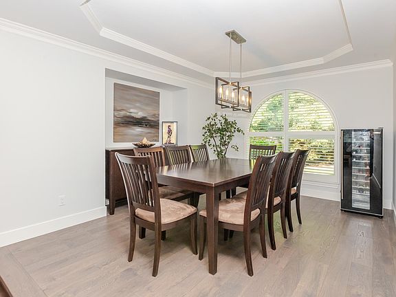 Crown moldingsEngineered hardwoodRefreshed kitchenGranite countertopsTiled flooringEating areaSpacious family room