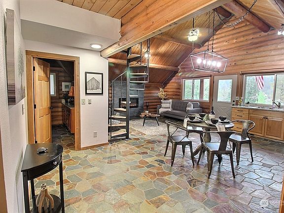 Sitting on nearly 2 and a half acres, this luxury log home has PNW written all over it! Perfect for an Air BnB, Long Term Rental or Single Family Home with ADU. Tucked up on the hillside near the base of Cougar Mountain and her trailheads this home features sweeping views of Squak Mountain. Two separate living spaces, each with Full Kitchen, Bathroom and Laundry with updates everywhere. Let's start with new floors, new kitchens (2 of them), new decks, Separate laundries for each floor and both floors have private entries. The loft can sleep 4! Two detached storage sheds, and plenty of space for some great outdoor BBQ'n and sitting around the fire pit! Privacy abounds... welcome home.