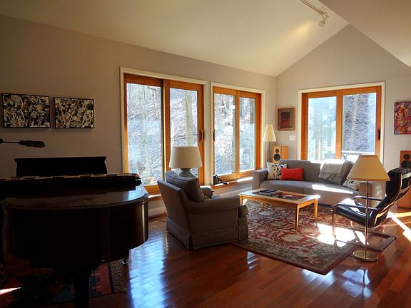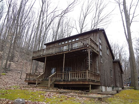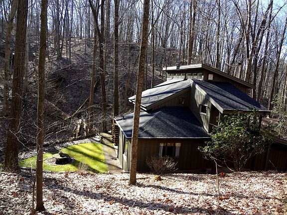 Contemporary 3 bed, 4 bath on 15.89 acres near Athens and Stroud's Run Park. Plus a 1227 sq. ft. artist's studio with full bath and attached garage. Peaceful, private, wooded, totally secluded with birds and wildlife. Come feel the quiet.Off the entry is a large bedroom with bath. Up from entry is the large light-filled living room with cherry floors and a wall of shelves. Adjacent is a dining area and kitchen with cherry cabinets, solid surface counters, and almost new SS appliances. Adjacent is a full bath/laundry room. Plus a spacious family room with wood-burning fireplace, cherry floors, lots of windows, and built-in shelves.Up another level is the master suite with a wall of closets and cabinets, a full bath, and a porch off the stairway landing. The lowest level is a huge bedroom (could be another family room) with walk out doors, closet, and full bath, a cozy wood burner room, and workshop. In addition, there's a 1227 sq. ft. 2 story, artist studio, attached garage and 2 deck