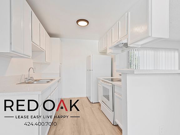 Top Floor, Sun Drenched Two Bedroom with Private Balcony, Central Heat and Air, Kitchen Appliances, Spacious Bedrooms, On-Site Laundry Facilities and TWO Included Parking Spaces ~ In Prime Sun Valley! Key Features: Perfectly Situated: Rich brown tones welcome you as you step into the beautifully landscaped front yard, with lush bushes framing your pathway to a home you'll love. Interior Elegance: Stunning vinyl flooring and abundant windows fill the space with natural light. Comfort Control: Central heat and air ensure a perfect indoor temperature year-round. Private Balcony: Enjoy fresh air and California sunshine on your private balcony, seamlessly extending your living space outdoors. Privacy Enhanced: Pre-installed blinds provide light control and added privacy. Gourmet Kitchen: Hardwood cabinets with granite counters and a spacious breakfast bar create an inviting space for casual meals. Dining in Style: A charming dining area under a stylish ceiling fan sets the stage for perfect entertaining. Serene Bedrooms: Spacious rooms with sliding closet doors and sunny windows offer comfort and tranquility. One room features a large closet with sliding doors while the other offers an expansive walk-in space. Luxurious Bathrooms: Relax in soothing soaking tubs with convenient hand-held showerheads, custom backsplashes, vanity sinks, and mirrors. On-Site Laundry: Enjoy the convenience of on-site laundry facilities, eliminating trips to the laundromat. Included Parking: Two parking spaces are provided for your personal vehicles. Pet-Friendly Policy: This community warmly welcomes your pets with a small deposit and monthly pet rent. Prime Location: Close to Sun Valley Recreation Center, Gol Soccer Complex, dining options, and the Golden State Freeway for easy city access. Your Vintage-Style Oasis Awaits! Available for immediate move-in. LEASE TERMS: One Year Lease Pictures and descriptions are of EXACT unit Square Footage is approximate. Showings may not be 1-on-1. All information must be validated on Red Oaks Website since 3rd party websites can feed incorrect information.