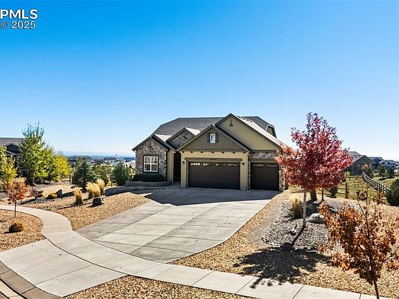 Located on a quiet cul-de-sac in sought-after Meridian Ranch Estates, this immaculate Campbell Homes ranch offers main-level living on a spacious 1-acre lot with beautifully designed landscaping and a finished walk-out basement. Step inside to find gleaming natural hardwood floors, neutral paint tones, custom window coverings, and abundant natural light throughout. The open-concept main level includes a formal dining room, a spacious living room with stacked-stone gas fireplace, and a chef’s kitchen featuring a huge central island with bar seating, rich cherry cabinetry, stainless appliances, gas cooktop with hood, and a wall oven/microwave combo. A sunny breakfast nook opens to the covered back deck, perfect for morning coffee or evening relaxation. The primary suite features a 5-piece bath and walk-in closet, with two additional main-level bedrooms, a full bath, and laundry conveniently located nearby. The finished walk-out basement adds tremendous versatility with a large rec room, wet bar, cozy wine nook, two additional bedrooms, and a full bath making this space ideal for guests or multi-generational living. Outside, the backyard is an oasis with mature trees, decorative rock, river rock borders, a covered deck, and a large patio with pergola, perfect for entertaining or enjoying Colorado sunsets. Residents of Meridian Ranch enjoy miles of walking trails, neighborhood parks, indoor and outdoor pools, a rec center with fitness facilities, and community events, all within minutes of shopping, dining, and highly rated schools. Meticulously maintained and move-in ready, this home perfectly blends privacy, comfort, and convenience.