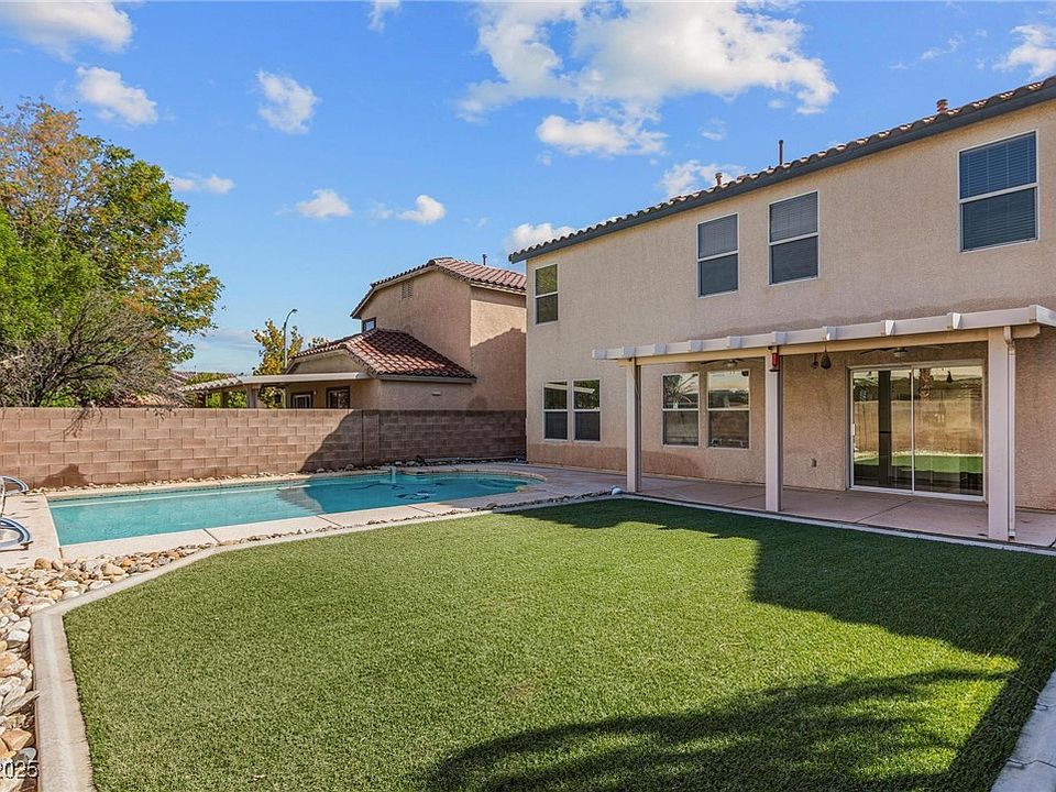 STOP WHAT YOU'RE DOING AND CHECK OUT THIS PROPERTY! This freshly painted home feature a beautiful kitchen SS appliances, quartz countertops, laminate hardwood floors throughout entire house. 3 bedrooms with a Huge master bedroom with and a walk in closet that will leave you speechless because of its size, a den (possibly a 4th bedroom) a huge loft 3 baths and 2 car garage. Spacious backyard features a POOL, a covered patio and synthetic lawn. You won't be disappointed!