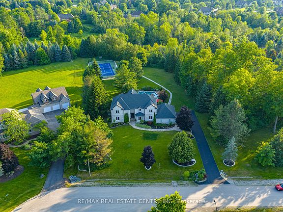 An exceptional opportunity to own a private luxury retreat in the prestigious Churchill Estates. Nestled on nearly 2 acres at the end of a quiet court, this elegant 4 bedroom, 4 bath estate offers an unparalleled lifestyle. Boasting over 5,000 sqft of beautifully finished living space, the home features a soaring vaulted ceiling in the great room, a stunning custom kitchen, and a serene primary suite with a spa like ensuite and walk in closet. Every detail has been thoughtfully designed from the grand principal rooms and home office to the fully finished basement with a rec room and gym. The professionally landscaped backyard is a true oasis, perfect for entertaining, with an in-ground pool, tennis court, outdoor kitchen, and covered patio. Complete with a Generac generator, integrated audio system, and 3-car garage .Ideally located minutes from highways, this home delivers luxury, comfort, and peace in one of Miltons most exclusive communities.