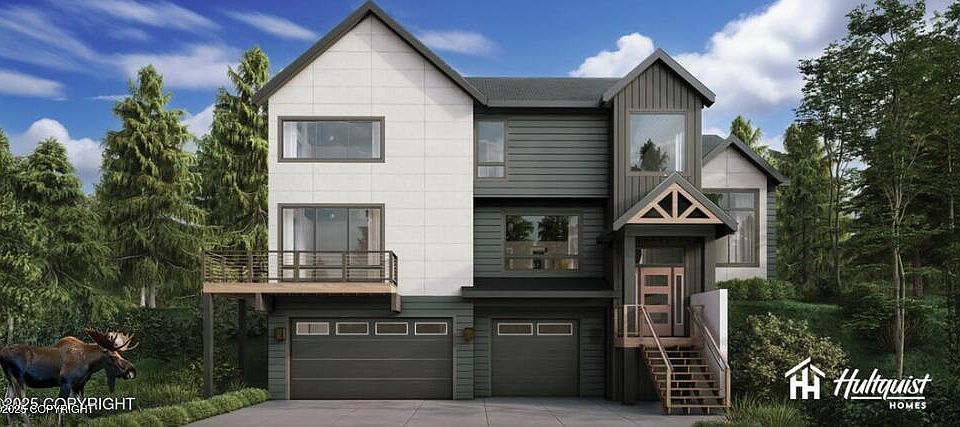 Welcome to this beautifully designed Hultquist Homes Alpine Floor Plan, located in the highly sought-after Sky Ridge Estates--just minutes from shopping, scenic trails, and convenient highway access.This home showcases a striking modern exterior and offers thoughtful functionality throughout.The expensive 940 sq ft garage is tucked beneath the home, along with a mudroom and a tall crawlspace ideal for extra storage. The main level features a two-story great room that fills the space with natural light, a spacious kitchen, and an open dining area perfect for entertaining. You'll also find a dedicated office, a large family room with access to a deck, and a private guest bedroom paired with a full-sized bathroom ideal for visitors or multigenerational living. Upstairs, you'll discover two well-sized bedrooms with a shared full bathroom, a convenient laundry area, and an impressive master suite complete with ample closet space and a luxurious ensuite bath. This home effortlessly blends modern style with everyday comfort in one of the area's most desirable neighborhoods.