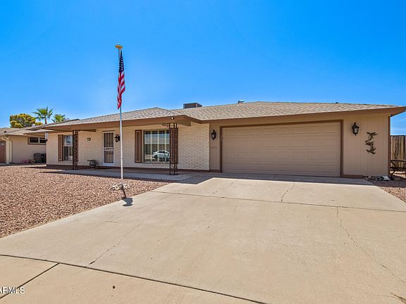Here it is folks. The price you've been waiting for on this beautiful Home, sweet home! This energy-efficient residence on a cul-de-sac in Sun City is waiting for you! The prop features a wider 2car garage, & easy-care yard. You'll love the open layout accentuated w/ plantation shutters, wood flooring, soothing palette, & backyard access. The kitchen comes w/ granite counters w/ a matching backsplash, built-in appliances, a pantry, & an island w/a breakfast bar for casual dining. The main bedroom offers soft carpeting, a cozy sitting nook, & private bathroom for added comfort. Venture into the backyard and discover the covered patio, storage shed, fire pit, & ample space for get-togethers. This value won't disappoint! Did u know you can finance with a reverse MTG? This home also features a new roof, New dual payne windows. New interior and exterior paint. The air conditioning is new in the existing shell. He didnt want to rent a crane. The ductwork has also been replaced in the home with an additional upduct for better airflow. New vinyl wood plank flooring, Granite counters, self cleaning oven/stove just 3 years old, ceiling fans throughout, Bonus room, third bedroom has a built in desk and Murphy bed it can be used as a bedroom or office. Bonus room also has a lot of floor to ceiling storage cabinets. popcorn removed from ceilings, French doors leading to the patio with built in blinds, Brand new breaker box additional storage room. Block fencing on an oversized lot with an RV gate. Covered patio with roll down sunscreens