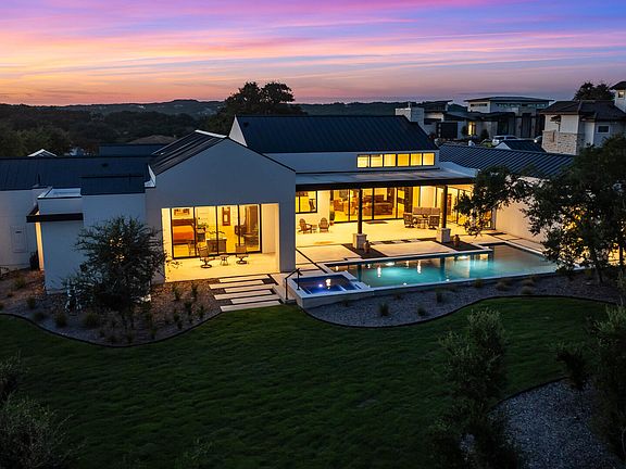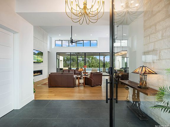 Discover 11136 Barreal, a stunning newly built modern ranch-style home in the exclusive Pecan Springs community of Boerne, TX. Offering 5,173 sq. ft., this luxury residence features 4 bedrooms with private en-suites, soaring ceilings, and walls of windows that flood the home with natural light. The chef's kitchen boasts waterfall quartzite countertops, custom cabinetry, and premium appliances, seamlessly connecting to the spacious living and dining areas with a sleek fireplace centerpiece. Retreat to the primary suite oasis with pool views, spa-inspired bath, soaking tub, oversized shower, and dual vanities. Enjoy resort-style outdoor living with a covered patio, sparkling pool, and spa, all set against beautifully landscaped grounds. Additional highlights include wide-plank hardwood floors, designer lighting, a gated driveway, and a side-entry garage-all just minutes from downtown Boerne, top-rated schools, and Hill Country attractions.