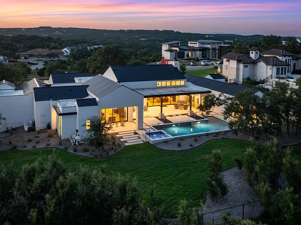 Sparkling poolSleek fireplace centerpieceBeautifully landscaped groundsWalls of windowsWide-plank hardwood floorsPremium appliancesNatural light