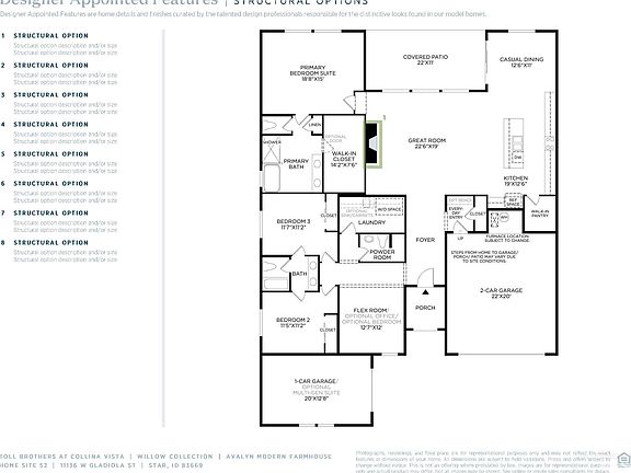 "The Avalyn" Spacious foyer leading into an open-concept great room, this floorplan is both inviting and functional. A large kitchen with island makes entertaining easy, while a walk-in pantry provides ample storage space for all your cooking needs. An adjacent casual dining area opens onto a covered patio that extends your living outdoors throughout the year. Cozy fire place in the great room. Additionally, the primary suite boasts dual sinks in its luxurious bath, along with two walk-in closets so there's plenty of space to store all your essentials. 2 secondary bedrooms with a shared bath. 3 car garage. Front and rear landscape included. Home is under construction. Photo similar. BTVAI