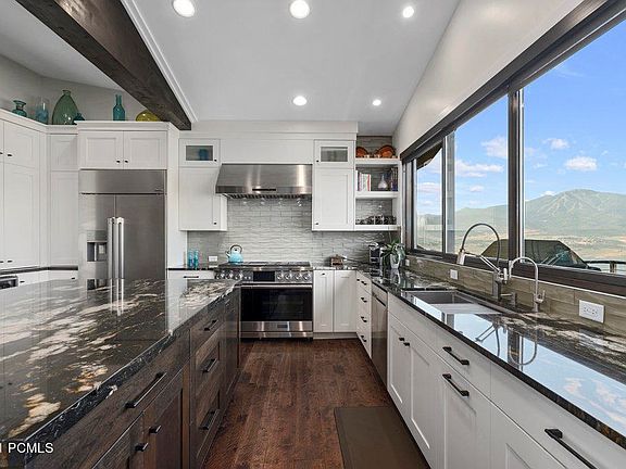 As soon as you enter this beautiful home you can't help but be struck by the mountain and lake views. The home was designed to take advantage of indoor/outdoor living and breathtaking scenery. (Please note: there is an additional 2130 sf of unfinished basement not included in the total square footage-currently used as storage). On the main level a comfortable, open concept great room with linear fireplace, hand scraped birch hardwood floors and vaulted ceilings leads to a large deck perfect for entertaining or lounging in your hot tub open to the stars. The chef's kitchen (designed by chefs) has a large island, commercial style 48'' Dacor range with convection and steam oven and built in wine refrigerator. Also on the main level is a laundry/mud room, separate office, full guest bath and a warm and inviting master suite with gas fireplace and panoramic view windows . The zen-style master bathroom has a deep soaking tub and a steam shower both with great views, heated floors, white oak cabinets, quartzite countertop, built in dressers and a large walk in closet. Downstairs you will find a comfortable family room with a fireplace as well as a wet bar and separate finished storage room with insulated glass doors perfect for a wine room as well as an additional storage room with second laundry hook-up. Finishing off the lower level are 3 more bedrooms, 2 bathrooms and another deck for lounging in the shade. Please see the list of distinctive features attached to this listing. This home is ideally located close to hiking and biking trails, 12 minutes to the slopes at Deer Valley via the new Jordanelle Parkway, and 15 minutes to Park City skiing, dining, and shopping. Plus you are only 40 minutes to Salt Lake City. Owner is licensee. 2021-08-17