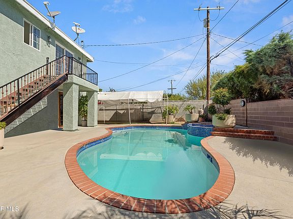 Behind the gated entry, you'll find secure parking and mature fruit trees — lime, orange, grapefruit, and lemon. The backyard feels secluded and centers around a sparkling pool, creating a resort-like environment for entertaining or quiet relaxation.