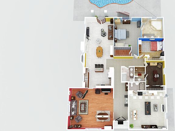 Sparkling poolMature fruit treesPrivate exterior entranceSweeping neighborhood viewsSecure parkingTwo primary suites