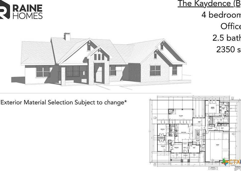 Brand new construction with 4 bedrooms, 2.5 bathrooms and a separate OFFICE. This home features wood plank tile throughout all areas except the three secondary bedrooms, designer paint choices, granite countertops, custom cabinets, built-in stainless appliances and an impressive walk-in pantry. The vaulted living room and coffered primary bedroom ceiling both have stained wood beams. The exterior stone is featured on both the living room and back porch fireplaces. The primary bathroom has a large walk-in shower and a freestanding tub. The laundry room connects to the primary closet and bathroom. Our favorite part of this house is the expansive back porch. This location is only about one mile from IH-35 and it will have easy access to the brand new high school that is being built next to the neighborhood. Construction should be complete by the end of November.