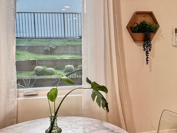 Enjoy the privacy of your own outdoor seating area with a view of landscaped step planters, and a separate private entrance secured with keypad locks on both the gate and front door. Ample street parking is readily available in the vicinity.