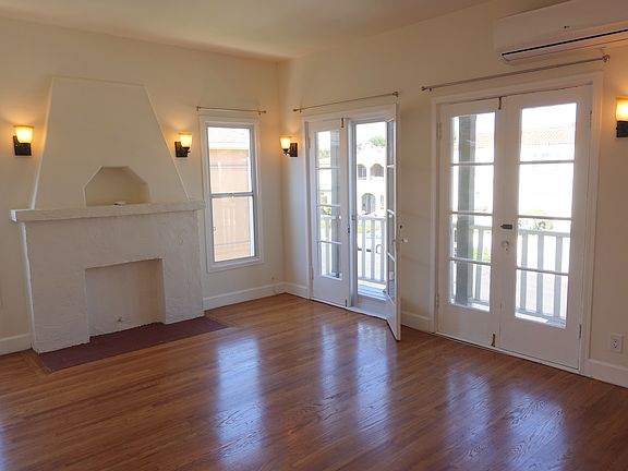 Available now. Super charming Spanish bldg. Light, bright & cheerful 2+2. 2nd floor unit with usable balcony. Apx.1,300 square feet. Remolded kitchen and baths, hardwood floors, AC. Fridge, washer/dryer included inside. One car parking garage. Rent $3200 plus one months security & pet deposit. Miacle Mile. On Cloverdale between Olympic and San Vicente. One months security deposit plus pet deposit if you have a pet