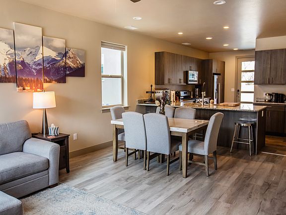 Beautiful, modern townhome completed Nov 2021 with granite countertops vaulted ceilings and beautiful views in the Tailwind Neighborhood. Two master bedrooms upstairs (King & queen beds) both have ensuite bathrooms. The king bathroom has two under-mount sinks on granite and the queen has a shower tub with the same luxury finishes and a small second-story, western-facing balcony to enjoy amazing mountain views. The front-loading LG washer/dryer stack is only 3 years old and includes all the sanitation and smart features you could want.