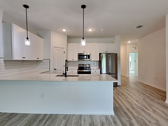 Be the first to live in this stunning 3 Bed, 2 Bath, 1 Car Garage, Luxe Villa, located in the heart of Deep Creek on a peaceful street. This home features 1353 square feet of interior living space, 9'4" ceilings, 42" Shaker Cabinets, Stainless Steel Appliances, Luxury Vinyl Plank Flooring, High End Fixtures and Ceiling Fans. And for added peace of mind and convenience, Hurricane Impact Windows are standard throughout the home, including double sliding doors that open to a Lanai.