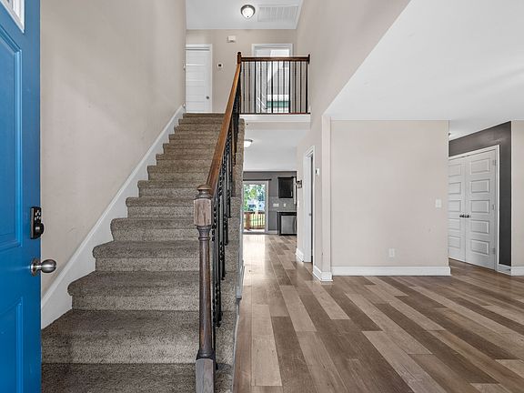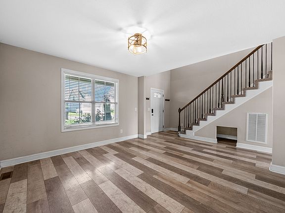 Welcome to this stunning 4-bedroom, 2.5-bathroom home in the desirable Eagles Bluff community! Offering 2,204 sq. ft. of living space, this home features a spacious kitchen with a pantry and plenty of storage, as well as a walk-in laundry room complete with washer and dryer. All bedrooms are located upstairs, including the primary suite with soaring cathedral ceilings and a large en-suite bathroom with dual sinks and large walk in closet.Step outside to enjoy the private backyard with a pergola, privacy fence, and serene open field views. Conveniently located near major highways, schools, shopping, dining, parks, and a movie theater, this home truly has it all! Broken kitchen window is in the process of getting replaced. Please note: The fireplace flame in photos is a virtual enhancement for marketing purposes. The fireplace itself has never been hooked up to propane, however lines are in place should a buyer choose to connect it.