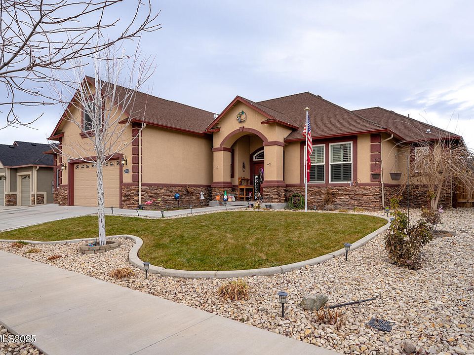 Many upgrades in this customized home in the well-located Monterra subdivision in Minden. A spacious entry area leads to a great room with high ceilings. Hand built custom media center/bookshelf in the living room is included in the sale. The kitchen is bordered by two breakfast bars offering the utmost in social interaction. There are plenty of granite counters and cabinets, all enhanced by a stylish small tile backsplash., The primary bedroom is large, with a shower, a jetted tub, a huge walk-in closet, and double sinks. Two more bedrooms and a bath are at the other end of the house. Upstairs is a Bonus Room of 364 sq. ft. room can be a bedroom or a workout room with its own full bath and thermostat control - included in Square Footage. Outside, there are two paver patio areas, one with a gas BBQ line. Greenhouse, berry bushes, peach and mulberry trees, many perennial flowers, gate access on both sides of the house, and a wildflower garden offer aesthetic beauty with minimal maintenance. The backyard also has a French drain on each side, running to the front of the property. A gorgeous home with a very livable floor plan. Original owner is licensed real estate agent. The seller may require a short rent-back. Home needs carpet throughout (4 bedrooms and stairs to the bonus room) - price already reflects a 10,000 credit for carpet. Home is sold AS-IS.