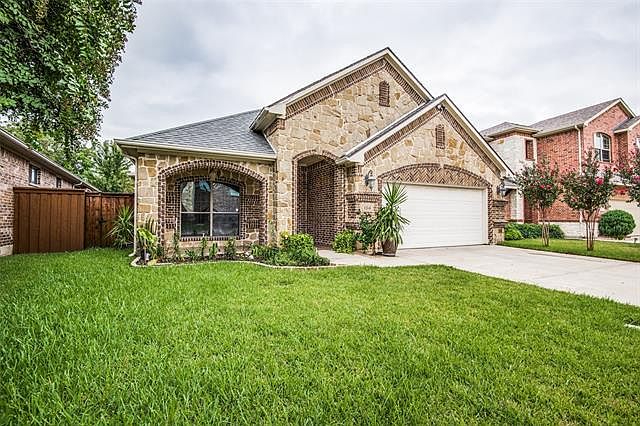 This home features stunning decorative stone that frames the spacious entryway to a 12ft tray ceiling foyer and decorative tile. The hand scraped hardwood floors are spectacular and decorate the entire hallway to the roomy kitchen with an island, oversized cabinets, and luxury granite counters. The second bedroom can be used as an office or studio. The living room features a stone decorated fireplace to entertain family and friends for hours before enjoying meals in the oversized dining area. The master bedroom features another luxurious tray ceiling with TWO enormous walk-in closets.This rare opportunity is in a quiet cul-de-sac in one of the most desirable communities.