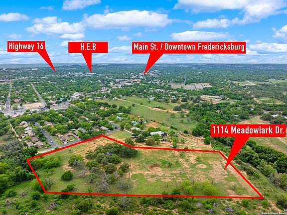 Prime +-9.06 acres in Fredericksburg City Limits, R-1 Zoned with additional acreage available! This exceptional property, offers an ideal canvas to build your dream home with a serene farm estate in the city limits. Subdivision of the property into City Lots would be done through the City replating process. City utilities are conveniently located in the street, and 24-inch sewer lines are ready for your project. With close proximity to Fredericksburg's vibrant Main St, boasting over 100 restaurants, bars, and shops. This is an unmatched opportunity within the City Limits of Fredericksburg. There is already a driveway in place at the Street and a water tap in place. There is a small cabin on the property with city water, sewer, Atmos Gas and CTEC electric hooked up. Additional acreage includes both sides of Barons Creek. Total of 4.067 acres available in addition to the 9.06 acres.