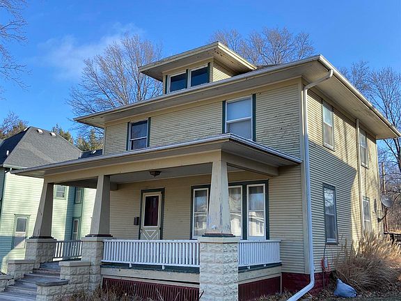 This two story home has a welcoming, open, front porch, beautiful Oak woodwork, Oak seated bench and Oak colonnades with a glass front book case. The large Living room has a beautiful picture window and opens to the formal dining room, with swinging glass double doors that open to the back deck. All 4 bedrooms are on the upper level and a full bath. The owners have made many improvements, including new carpet, steps to the open front porch, railing around the large 20X14 back deck, new electrical breaker panel and wiring and some new windows. A radon system was installed by Thrashers in 2016, new water heater in 2014, new furnace with warranty in 2021, roof in 2013, and so many more great updates!! Spend some enjoyable time on the deck around the firepit in the fenced in backyard. Don't miss out on this beautiful home!!