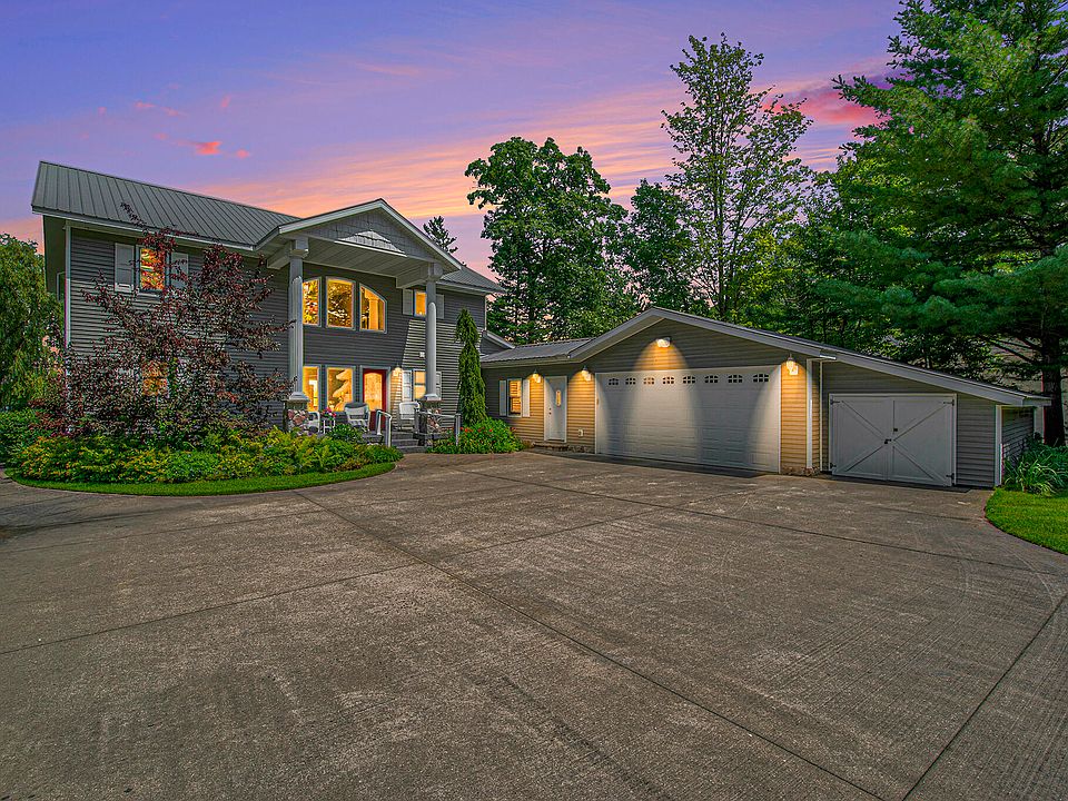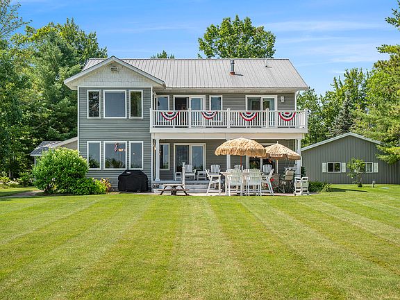 Discover your dream home on Black Lake with 120' of private frontage, offered for the first time by its original owners. This custom-built gem is a haven for nature lovers, offering daily sightings of eagles, loons, swans, cranes, and playful minks. Enjoy stunning sunrises, sunsets, and the northern lights from the covered cement deck and porch. Step outside to fish, kayak, boat, or paddleboard, or relax on the sandy beach. Nearby, explore the Black Mountain Rec area for dirt biking, hiking, snowmobiling, ice fishing, and cross-country skiing. The UAW Championship Golf Course and several excellent dining options are just down the road. This home features top-quality craftsmanship, 4 bedrooms with 2 owners' suites (each with a lakeside balcony), 3.5 baths, a gourmet kitchen with exoticgranite, Pioneer cabinetry, and a spacious walk-in pantry. At the end of a memory filled day dim the lights in the impressive entryway and unwind by the fireplace. Second set of washer and dryer located in owner's suite for convenience. There is plenty of room to store your toys in the garage or the 30x50 pole barn with a mancave. Furniture, equipment, and boats are available for purchase. Ask your agent for the extensive amenities list. Home has monitoring capabilities. Only financial approved buyers please. Local lenders and cash buyers preferred. Home Warranty protected.