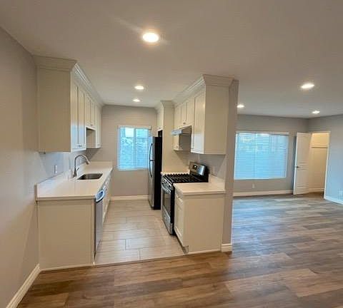 LOCATION LOCATION LOCATION - 1ST MONTH FREE!! PRIME HOLLYWOOD!! TOP FLOOR!! 1 BED, 1 BATH - Very Large! 950+ SQUARE FEET! WITH 1ST MONTH FREE, APARTMENT ONLY AVERAGES $1,829/MONTH FOR FIRST 12 MONTHS! Beautifully and completely remodeled apartment in an 8 unit property. PRIME LOCATION JUST A LITTLE SOUTH OF SUNSET BLVD! Beautiful floors throughout and entire unit has recessed lights! Gorgeous kitchen comes with brand new quartz counter-tops, beautiful white cabinets and brand new high end stainless steel appliances, INCLUDING DISHWASHER. Bathroom has custom tile work along with new vanity and new high-end fixtures. A/C! TONS OF CLOSET SPACE AND STORAGE! Brand new windows come with new blinds! Apartment is VERY BRIGHT! 1 car gated parking spot. 6 of the 8 apartments were vacant and everything in all of the units have been completely upgraded, including all plumbing and electrical. This Hollywood location is Very Walkable so most errands can be accomplished on foot. 87 out of 100 Walk Score - Many nearby public transportation options! TOP FLOOR! HUGE! EVERYTHING BRAND NEW! DISHWASHER! LANDLORD PAYS FOR WATER AND TRASH